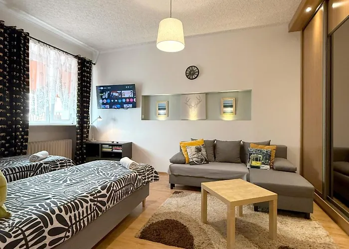 - ❓Waar bevindt dit appartement zich?Dit appartement is gevestigd in de Wzgórze Św Maksymiliana wijk.